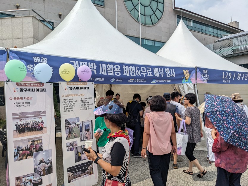 8월 29일부터 8월 31일까지 진행된 양구 배꼽 유니버스 축제에서 커피박을 활용한 탈취제와 비누를 무료로 나눠주고, 직접 만들어보는 체험 부스를 운영하였다.