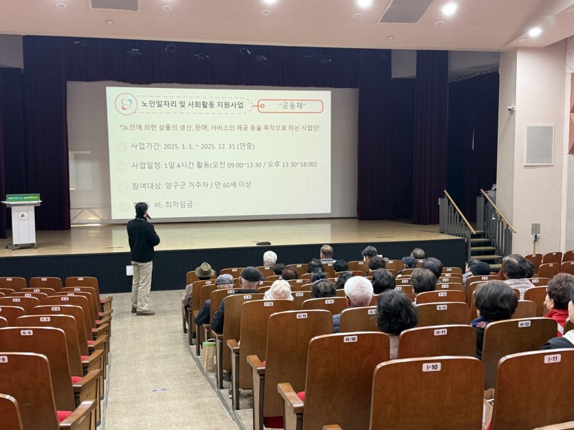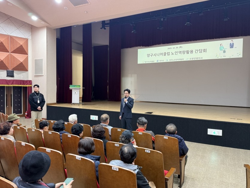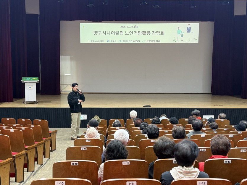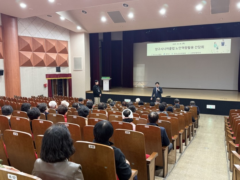 [2025. 10. 28.] 노인역량활용 사업단 참여자 간담회 페이지 정보 작성자 관리자 조회 48회 작성일 25-10-28 15:41 목록 본문 노인역량활용 사업단(시니어금융업무지원, 청춘서포터즈, 장난감도서관) 참여자 간담회가 28일 오전 양구문화복지센터 공연장에서 진행되었다.